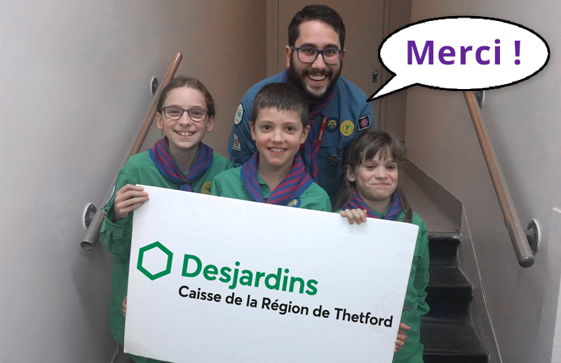 Les Scouts tiennent à remercier la Caisse Desjardins de la Région de Thetford pour leur appuie envers les jeunes de la région.
