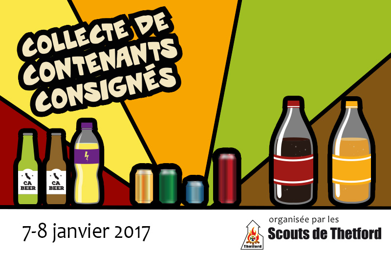 Les Scouts de Thetford invitent la population des secteurs Black Lake et Thetford Mines à conserver bouteilles et canettes vides du temps des Fêtes pour une grande collecte qui se tiendra le 7 et 8 janvier 2017.